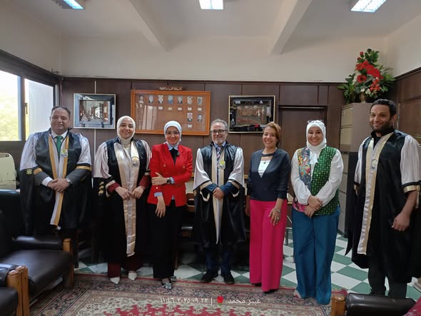 حت رعاية الأستاذ الدكتور/ أحمد المنشاوي – رئيس جامعة أسيوط الأستاذ الدكتور/ جمال بدر – نائب رئيس الجامعة لشئون الدراسات العليا والبحوث الأستاذ الدكتور/ ياسمين الكحكي – عميد كلية التربية النوعية بأسيوط الأستاذ الدكتور/ ناريمان إسحق – وكيل الكلية لشئون الدراسات العليا والبحوث الأستاذ الدكتور/ هالة صلاح الدين عبد الستار – رئيس قسم التربية الفنية تمت اليوم مناقشة رسالة الماجستير المقدمة من الباحثة/ ياسمينا فتحي محمد محمود ، وذلك للحصول على درجة الماجستير في التربية الفنية (تخصص أشغال الخشب) بعنوان: "الإمكانات التشكيلية للصموغ النباتية كمدخل لإثراء المشغولة الخشبية بالإفادة من الوحدات الزخرفية للزي الشعبي المصري" وذلك يوم الثلاثاء الموافق ٢٣ سبتمبر ٢٠٢٥م الساعه ١١ صباحا بقاعة المؤتمرات بالكلية كما توجهت عميد الكلية بخالص الشكر والتقدير لأعضاء لجنة الإشراف والمناقشة والحكم : أ.د/ إلهامي صباح أمين سليمان – أستاذ أشغال الخشب – كلية التربية الفنية – جامعة حلوان (مناقشاً ومقرراً) أ.د/ محمد عبد الباسط محمد درويش – أستاذ أشغال الخشب ووكيل كلية التربية النوعية لشئون خدمة المجتمع وتنمية البيئة – جامعة أسيوط (مناقشاً) أ.م.د/ سعيد مصطفى محمد – أستاذ مساعد أشغال الخشب – قسم التربية الفنية – كلية التربية النوعية – جامعة أسيوط (مشرفاً) د/ هيثم عبد الرحيم عز العرب – مدرس أشغال الخشب – قسم التربية الفنية – كلية التربية النوعية – جامعة أسيوط (مشرفاً) كما تقدمت الأستاذ الدكتور/ ياسمين الكحكي – عميد الكلية، والأستاذ الدكتور/ ناريمان إسحق – وكيل الكلية للدراسات العليا والبحوث بتكريم الأستاذ الدكتور/ إلهامي صباح أمين – أستاذ اشغال الخشب كلية التربية الفنية ـ جامعة حلوان ، وذلك لمشاركته القيمه وجهوده المخلصه في تحكيم وتقييم الابحاث بمجلة حوار جنوب جنوب وبما اتسمت به من موضوعية ونزاهه علميه مما كان له بالغ الاثر في تعزيز مكانه المجله والارتقاء بها في الاوساط الأكاديمية والعلمية. وتتوجه سيادتها بخالص الشكر والتقدير لسيادته على عطائه المتميز وإسهاماته العلمية الرفيعة، متمنين له دوام التوفيق والسداد ومزيدًا من العطاء لخدمة البحث العلمي. 🌸 🌸 مع أطيب الأمنيات للباحثة بمزيد من النجاح والتوفيق، ولجميع أبنائنا وبناتنا طلاب الدراسات العليا بمواصلة التميز والإبداع.