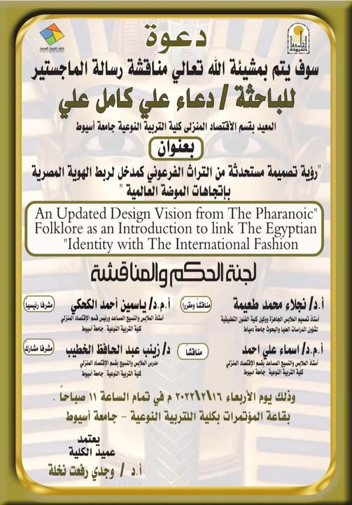 سيتم بمشيئة الله تعالى إقامه حفل تأبين للمغفور لها الدكتورة الفاضلة/ اسماء عبدة حسن المدرس بقسم الاقتصاد المنزلي وذلك يوم الخميس الموافق ٢٠٢٢/٣/٣ م