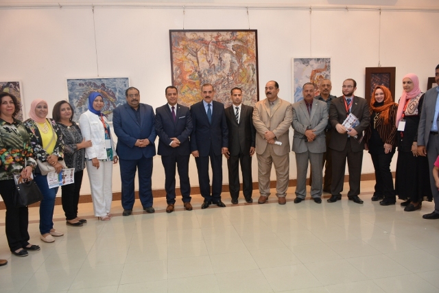 Major General Gamal Nour El Din, Assiut governor, Dr. Shehata Gharib Shalqami, vice president of Asut University for Education and students, and Dr. Wagdy Rose Dean of the Faculty of Quality Education exhibition "Creative touches " organized by the Faculty of Quality education at the Palace of Assiut culture, and the denominator within the activities of the fourth day For the third Creative Forum of the Faculties of Quality education at the Republic level, under the patronage of Dr. Tariq Al Jamal, President of Assiut University, and in the presence of Dr. Mohammed Jalal, Vice dean for graduate studies and research, Dr. Hala Salah Al Din, head of Technical Education Department, and Prof. Wissam Darwish Director of Assiut Culture Palace, Dr. Amal Yousef specialization of ceramics in the Faculty of Quality education, and Dr. Mohamed Abdel Baset Specialization of wood works in the Faculty of Quality Education and the faculty members participating in the exhibition.Dr. Wagdy, the dean of the College, explained that the opening included an inspection tour of the general Gamal Nour El Din governor of Assiut and Dr. Shehata Gharib, where they reviewed the works of art and the composition within the exhibition, which has more than 39 frescoes and paintings and fine drawings of the faculty members In the Faculty of Quality Education, the fourth day's events also included musical performances and exhibition arts, which were introduced by students of the Colleges of quality education from various universities.
