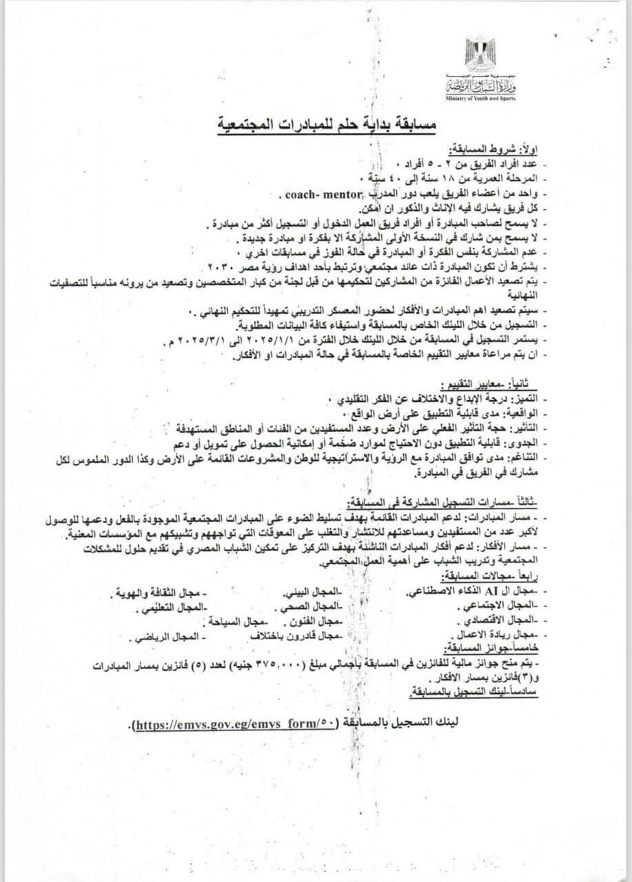Prof. Dr. Yasmine El-Kahky, Dean of the Faculty of Specific Education, extends an invitation to participate in the second edition of the "Beginning of a Dream" competition of the Ministry of Youth and Sports and under the patronage of Mrs. Intisar El-Sisi, wife of His Excellency President Abdel Fattah El-Sisi, President of the Republic.