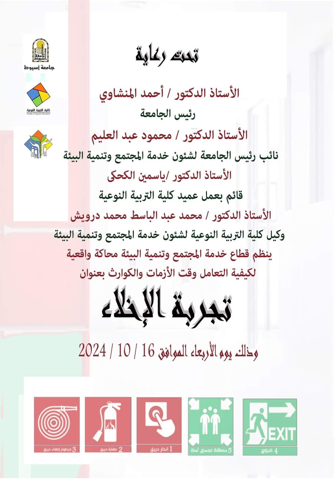 The Community Service and Environmental Development Sector organizes a realistic simulation of how to deal in times of crises and disasters entitled "Evacuation Experience"