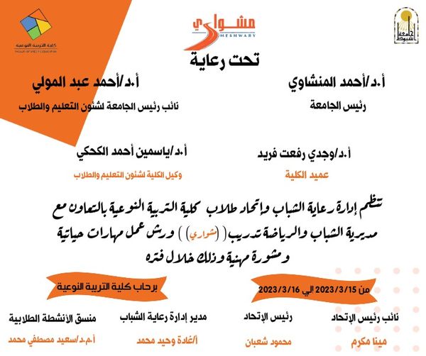 اعلان هام خاص بتدريب عرض مشواري داخل كلية التربية النوعيه 14 مارس 2023 تدريب مشواري غدا داخل كلية التربية النوعيه الساعه١٠ صباحا للتسجيل https://docs.google.com/.../1FAIpQLSdH3iIh6uU.../viewform...