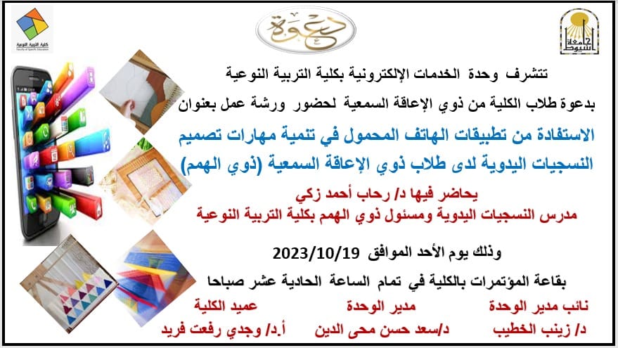 دعوة لحضور ورشة عمل بوحدة الخدمات الإلكترونية 15 أكتوبر 2023 دعوة لحضور ورشة عمل بوحدة الخدمات الإلكترونية https://m.facebook.com/story.php?story_fbid=820052223462872&id=100063743064814&mibextid=UyTHkb