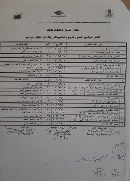جدول اختبارات منتصف الفصل الدراسى الثانى لطلاب وطالبات قسم التربية الفنية مع أرق أمنياتنا للجميع بالتوفيق 14 مارس 2023 جدول اختبارات منتصف الفصل الدراسى الثانى لطلاب وطالبات قسم التربية الفنية مع أرق أمنياتنا للجميع بالتوفيق