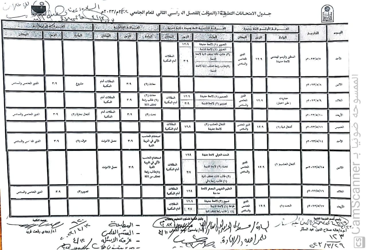 جدول الامتحانات العملية لجميع الفرق الدراسية لقسم التربية الفنية بكلية التربية النوعية بجامعة أسيوط للفصل الدراسي الثاني 13 أبريل 2023 جدول الامتحانات العملية لجميع الفرق الدراسية لقسم التربية الفنية بكلية التربية النوعية بجامعة أسيوط للفصل الدراسي الثاني