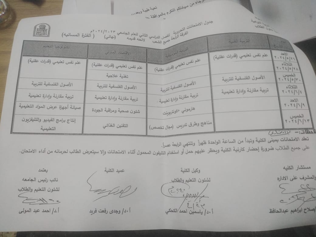 جــدول الفصل الدراسي الأول للعام الجامعي 2025-2026 م الفرقة الرابعة – قسم تكنولوجيا التعليم ( لائحة جديدة ) نهائى