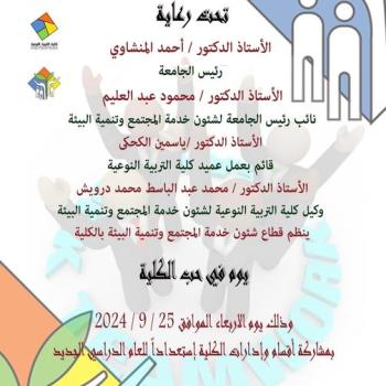 تحت رعاية الأستاذ الدكتور ياسمين الكحكى قائم بعمل عميد كلية التربية النوعية