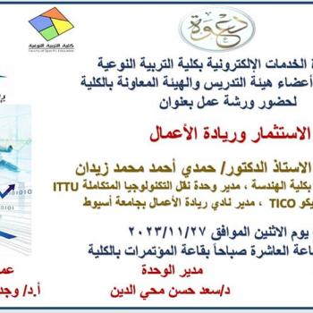 تحت رعاية السيد ا.د / احمد المنشاوي رئيس جامعة اسيوط والسيد ا.د/ وجدي رفعت عميد كلية التربية النوعية والسيدة ا.د/ ياسمين الكحكي وكيلة الكلية لشؤن التعليم والطلاب وبحضور ا.د/…