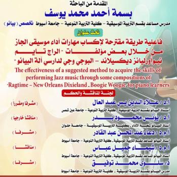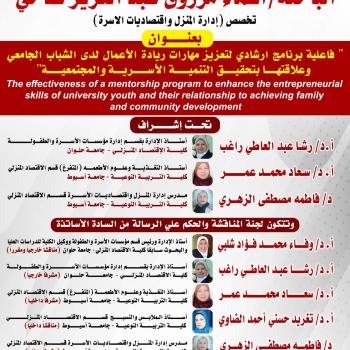 دعوة لحضور مناقشة رسالة دكتوراه بقسم الاقتصاد المنزلي للباحثة / أسماء مرزوق