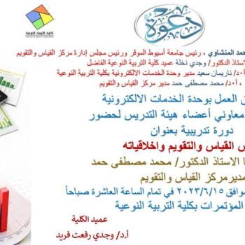 دعوة لحضور ورشة عمل تحت عنوان أسس القياس والتقويم وأخلاقياته