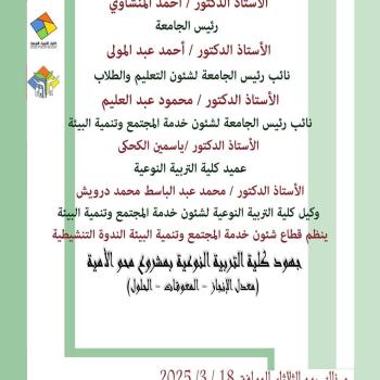 Under the patronage of Prof. Dr. Yasmin Al-Kahki, Dean of the College of Specific Education, and Dr. Saad Hassan Mohy Eldin, Director of the Electronic Unit at the college, the Electronic Unit at…