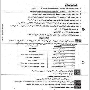 The Media Unit at the Faculty of Specific Education, Assiut University, extends its heartfelt congratulations to Prof. Dr. Yasmine El-Kahky for the issuance of the decision of the President of the…