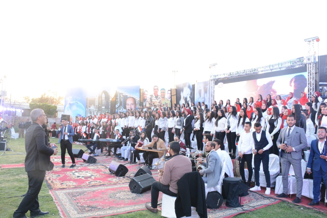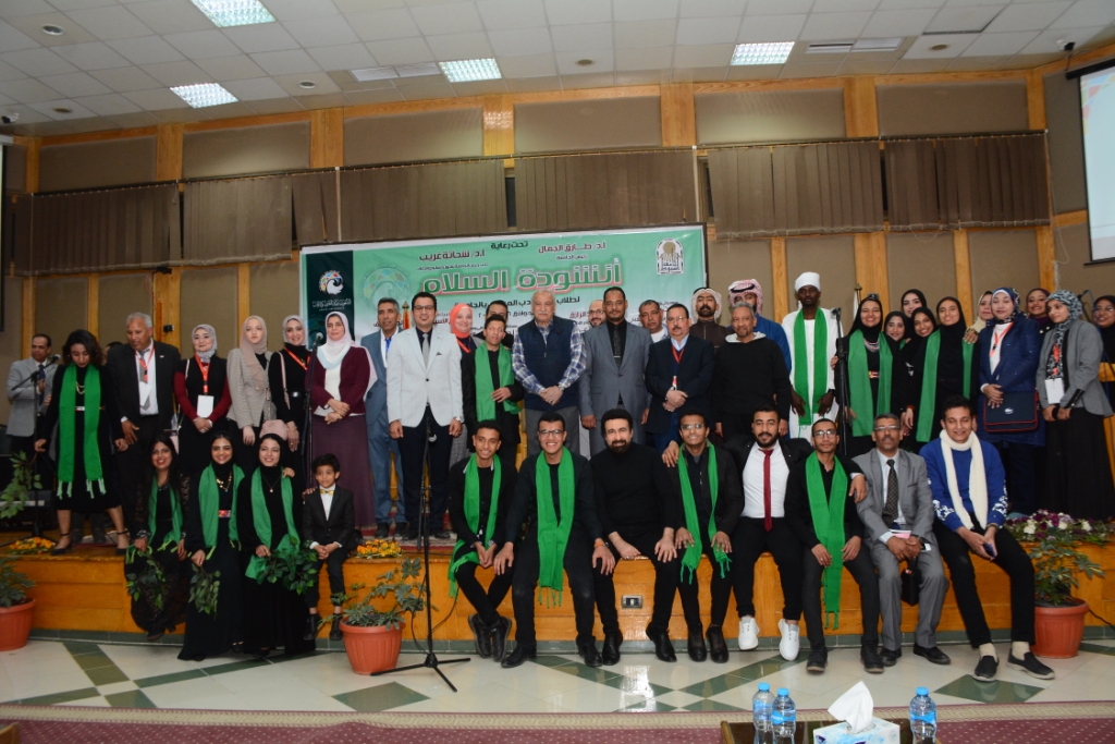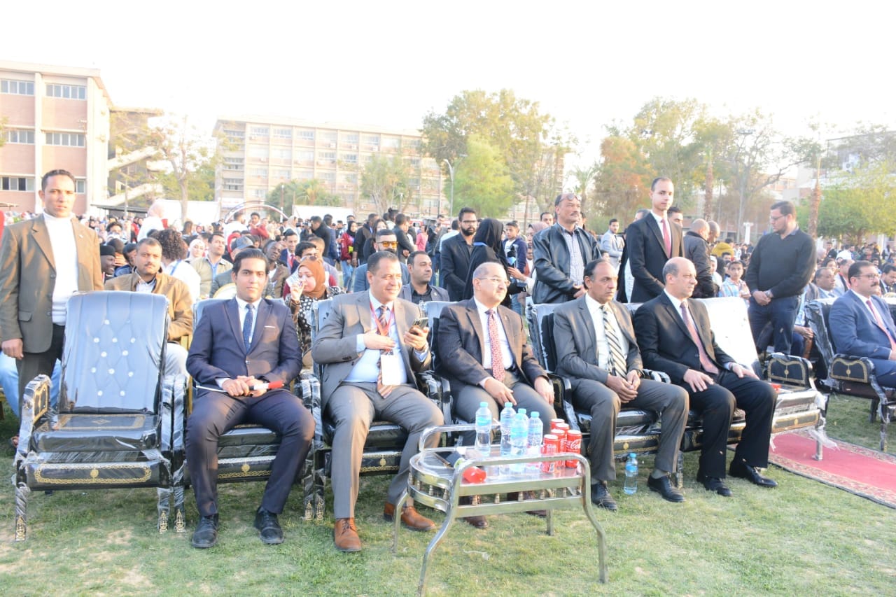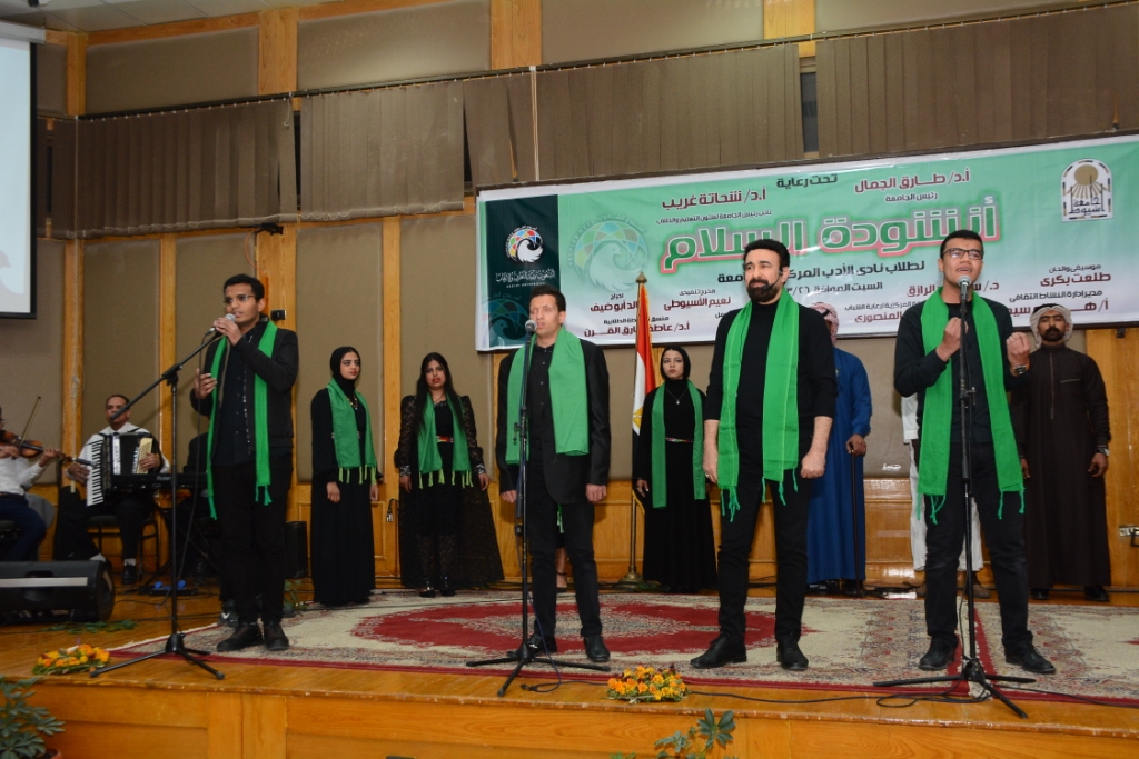This came within the fourth day of the events of the Meeting of peoples week organized by the university in its second edition in the presence of Dr. Shehata Gharib, Vice President of the University for Education and Students Affairs and General Supervisor of organizing the meeting, Dr. Taya Abdul Latif Advisor to the Minister of Higher Education for Student Activities, Dr. Assem Al-Qubaisi, Undersecretary of the Ministry of Endowments, Artist Tarek Desouki, And Professor Ezz Al Mansouri, Director General of the Central Department of Youth Welfare, Dr. Ahmed Shret, Director of the Department of Student Federations, Dr. Asmaa Abdul Rahman Advisor Cultural activity, Dr. Ghada Abdel Rahman, advisor to the scientific committee of the university, Professor Hashim Sayed, director of the Department of Cultural Activity, and a group of deans and agents of colleges at the university as well as faculty members and a crowd of Egyptian students and expatriates from the university of Asyut and Egyptian universities.