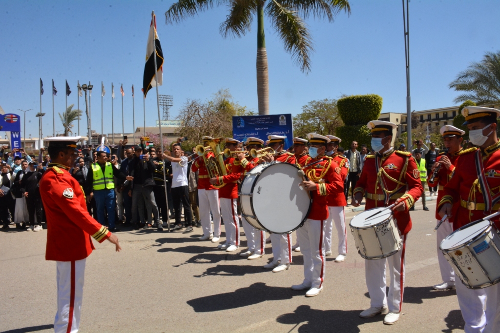 Major General Staff Mohib Habashi, Commander of the Southern Military Region, participated with Dr. Tarek Al-Jamal, President of Assiut University, and Dr. Shehata Ghraib, Vice President of the University for Education and Students, in the progress of a mass march in the media and presented by military music, which included thousands of Egyptian university students and incoming students represented by more than 30 Arab and African countries as part of the events of the second day of the second forum program of Peoples Week, which raised the slogan "Peoples against extremism and terrorism" and also witnessed the participation of university guests Dr. Yousef Al-Wardani Assistant Minister of Youth, Dr. Jalal Salem, Vice President of Port Said University for Education and Student Affairs, Dr. Fathi Nada, Captain of Sports Professions, and journalist Mahmoud Bakri, as well as a number of officers and soldiers of the Southern Military Region of Assiut and a group of deans, agents and students of the university from various colleges and gentlemen coordinators of student activities at the university.