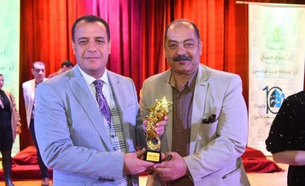 Honoring Dr. Wajdi Rifaat Farid, Dean of the Faculty of Quality Education by Professor Dr. Shehata Gharib Shalgami, Vice President of Asyut University for Education and Students Affairs at the 10th Festival of Theatrical Creativity