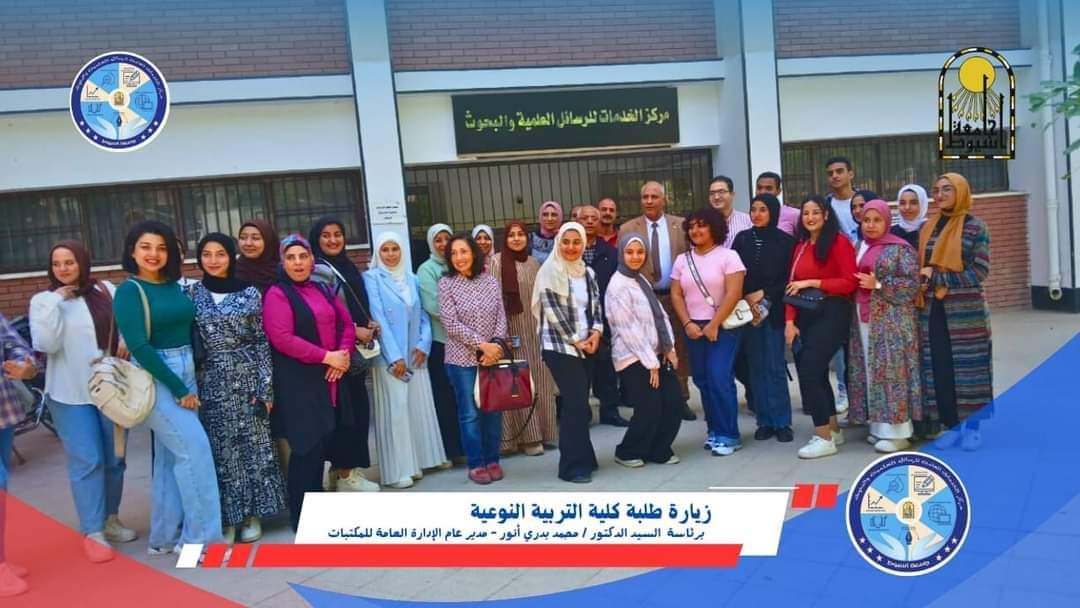 The visit took place under the supervision of Dr. Mohamed Badri Anwar, Director General of the General Administration of Libraries, where he gave a detailed explanation of the various services provided by the Center to support access to information. He also reviewed the electronic information sources available through the Digital Library Unit and the Sources Search Unit, explaining how the center keeps pace with scientific developments in the field of education to increase the benefit provided to Assiut University students.