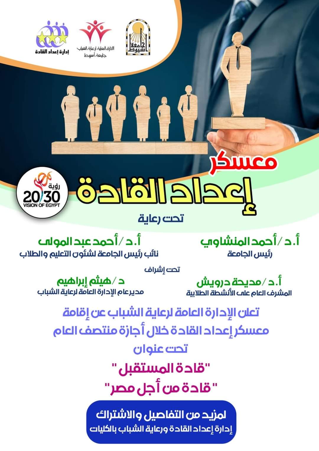 لمزيد من التفاصيل والاشتراك إدارة إعداد القادة ورعاية الشباب بالكليات