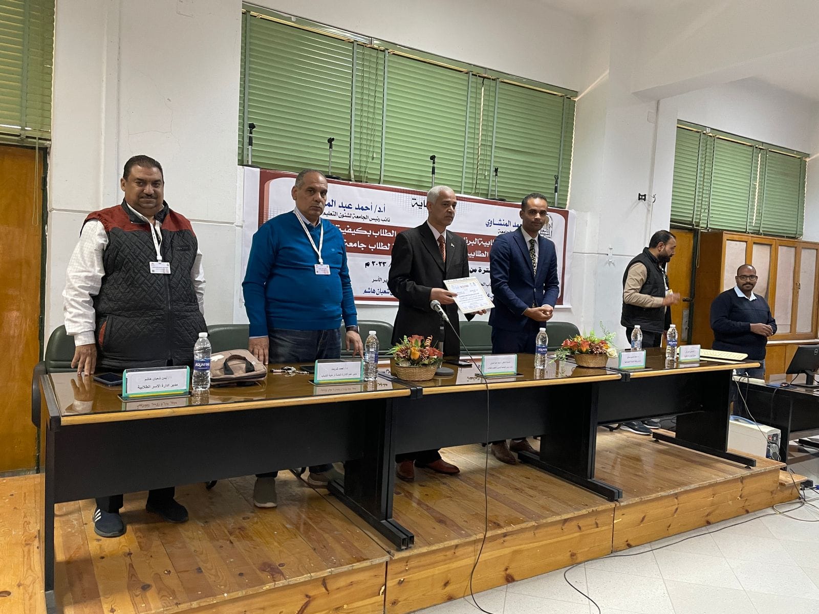 بالقاعه الملحقه بقاعه المؤتمرات بكليه الزراعة خلال الفتره من ٥ حتي ٩ مارس ٢٠٢٣ التي تنظمة إداره الأسر الطلابيه بحضور الأستاذ الدكتور/أحمد عبد المولي نائب رئيس الجامعه لشؤن التعليم والطلاب والمدير عام الاداره العامه لرعايه الشباب الدكتور /أحمد شريت وتوزيع الشهادات علي المتدربين .
