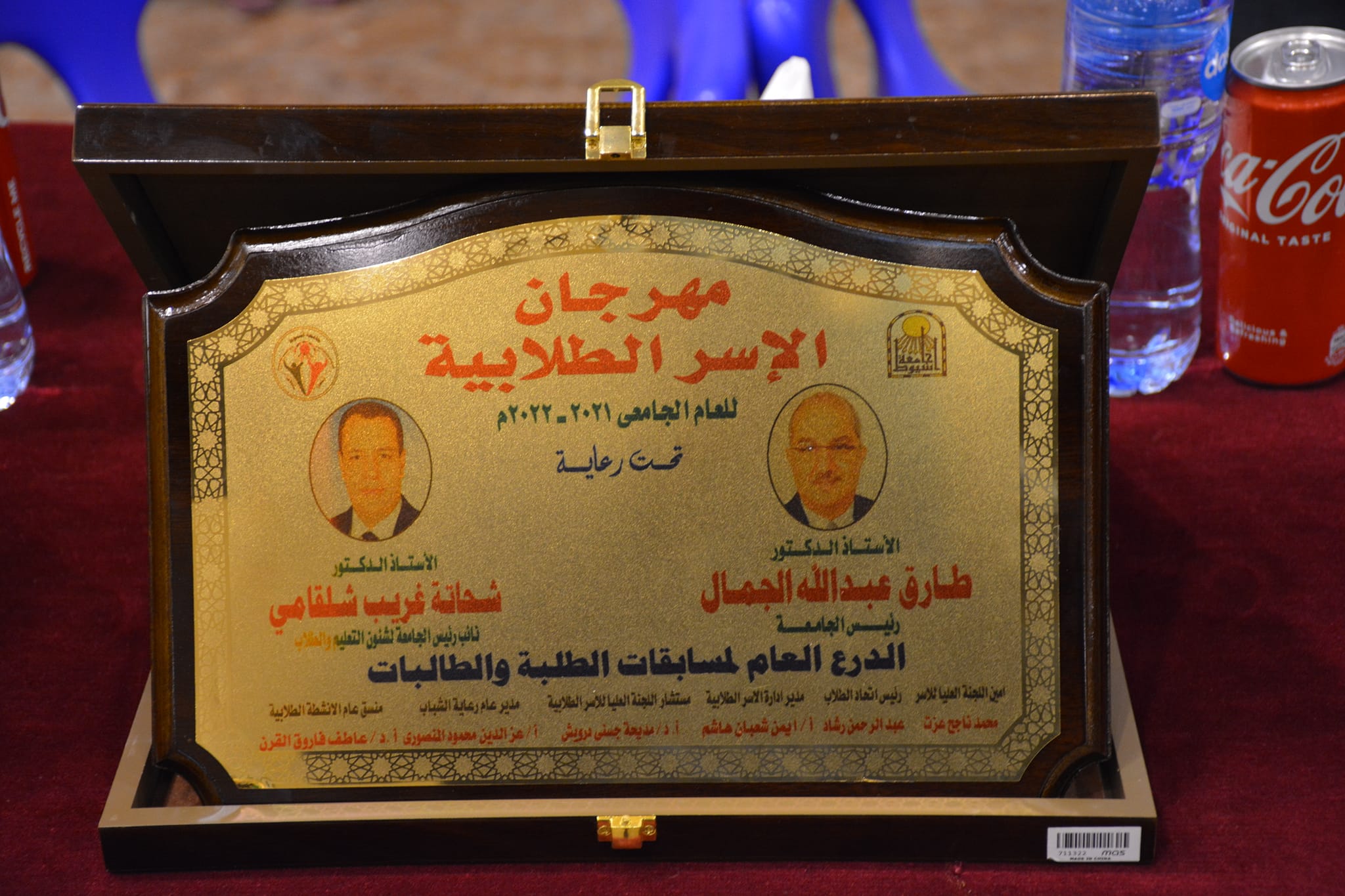 في سهره رمضانيه وامسيه جديده لجامعة اسيوط تختتم الادارة مهرجان الأسر الطلابية لعدد ١٤ كليه مشاركة وذلك فى حضور الاستاذ عزالدين محمود المنصوري مدير عام الإدارة العامة لرعاية الشباب والدكتورة مديحة درويش عميد كلية الطب البيطري ومستشارة النشاط والدكتور محمد حسين موسي والسادة الأفاضل أعضاء اللجنة العليا للانشطة الطلابية ومديري رعاية شباب الكليات واتحاد طلاب الجامعة .