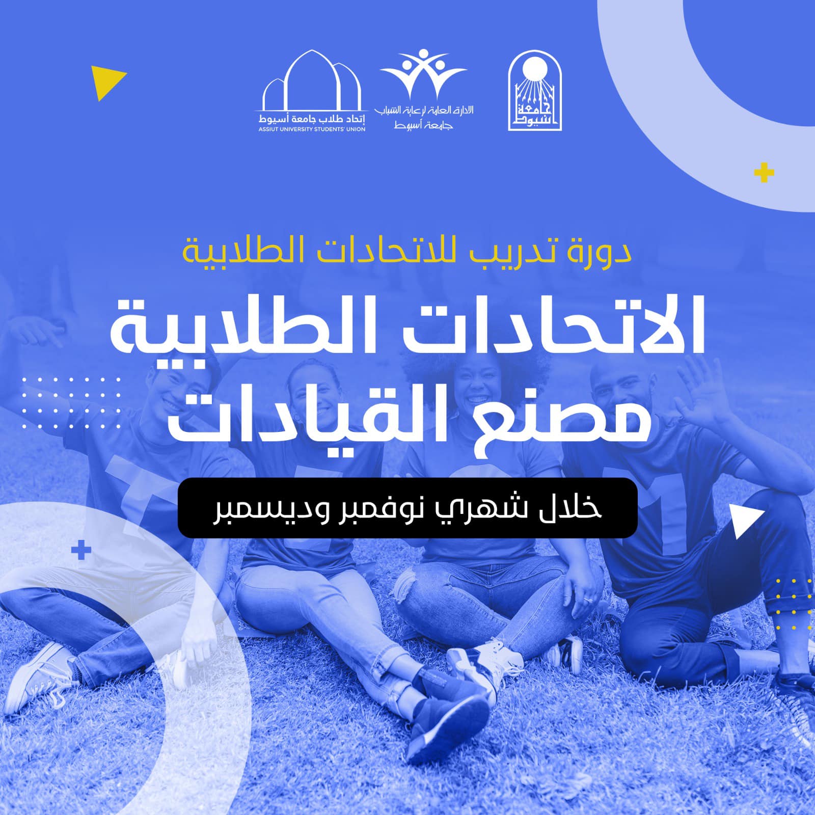 إدارة الاتحادات الطلابية بالإدارة العامة لرعاية الشباب.. دعوة لمشاركة جميع الطلاب في دورة تدريبية عن " الاتحادات الطلابية مصنع القيادات " وذلك ايام الثلاثاء والاربعاء  الساعة ٢ ظهرا  خلال شهري نوفمبر وديسمبر بقاعة ا.د طارق الجمال ( قاعة بهو الرواد )