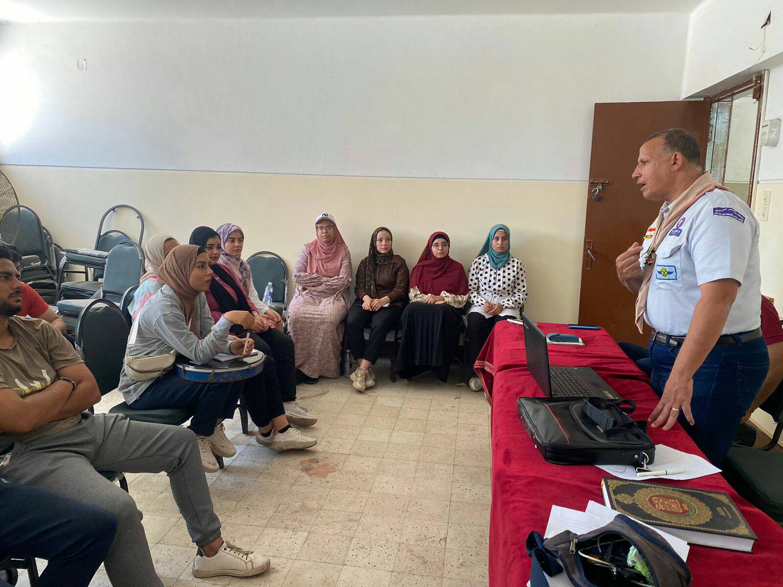ادارة الجوالة والخدمة العامة ..استمرار فعاليات مراكز تدريب المهارات الكشفية والفنية والثقافية لطلاب الجامعة (طلبة - طالبات ) وتأهيلهم للانضمام إلى عشائر كلياتهم لمدة ثلاث أسابيع خلال شهر يوليو وأغسطس وذلك ثلاث أيام أسبوعيا (الأحد - الاثنين - الثلاثاء ) بقاعة الأنشطة الطلابية