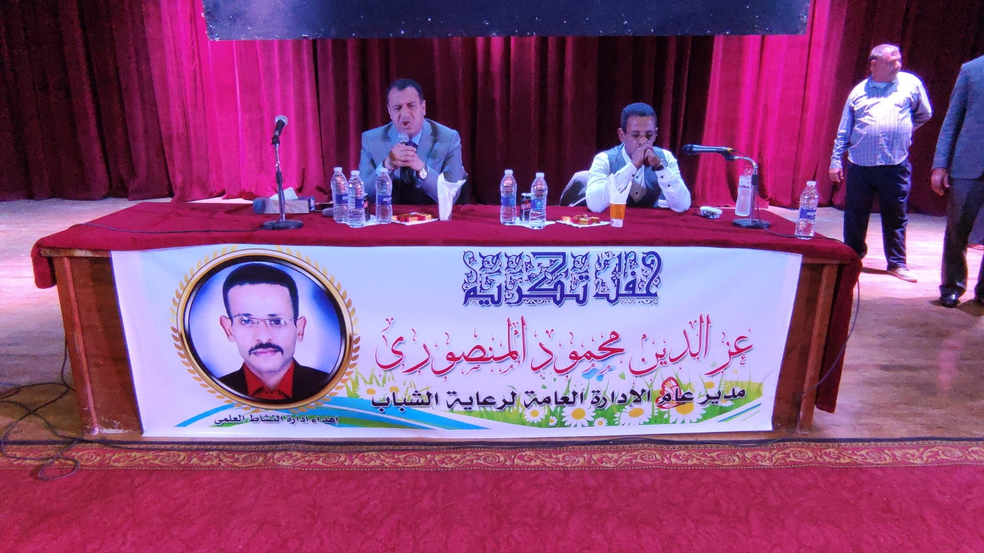 حفل تكريم للاستاذ الفاضل عز الدين المنصوري مدير عام الإدارة العامة لرعاية الشباب المركزية بمركز النيل للتنوير والأشعاع الثقافي بحضور الأستاذ الدكتور شحاته غريب نائب رئيس جامعة أسيوط لشؤون التعليم والطلاب وبعض من اعضاء اللجنة العليا للانشطة الطلابية وجميع الزملاء والزميلات برعاية الشباب المركزية وكل محبينه عرفانا وتقديرا منهم للإنسان والأب والأخ والصديق إنسان أجمع عليه كل من تعامل معه متمنين له التوفيق في حياته القادمة