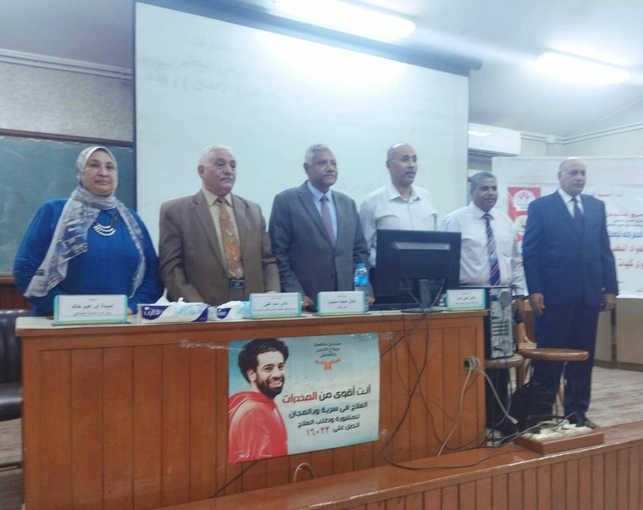 بحضور كل من: الأستاذ الدكتور نادى سيد على مستشار صندوق مكافحة وعلاج الإدمان والتعاطى للسموم والمخدرات ورئيس مصلحة الطب الشرعى بأسيوط سابقا و الاستاذ الدكتور عادل محمد محمود عميد الكلية و الأستاذ الدكتورعادل على تمام وكيل الكلية لشئون التعليم والطلاب والاستاذ الدكتورجلال الصغير وكيل الكلية لشئون البيئة وخدمة المجتمع والاستاذ الدكتورعلى عبداللاه بقسم وقاية النبات - والاستاذ خالد شلبى مدير رعاية الشباب بالكلية و الدكتور موسى محمد حسانين أخصائى برعاية الشباب بالكلية و الدكتوره  عزه فؤاد ابراهيم اخصائى برعاية الشباب بالكلية و الاستاذ أحمد محمد أحمد ابو العلا اخصائى اجتماعى برعاية الشباب بالكلية والاستاذ مصطفى جلال أخصائى اجتماعى بالنشاط الاجتماعى للإدارة العامة لرعاية الشباب