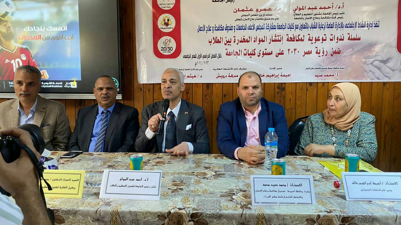 وألقى المحاضرة الاستاذ/ محمد سيد محمد مشرف محافظة أسيوط لصندوق مكافحة المخدرات وعلاج الإدمان