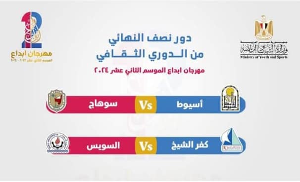 نظمت وزارة الشباب والرياضة مسابقة مهرجان إبداع الموسم الثاني عشر ٢٠٢٤ وصعود جامعة أسيوط الي الدور النصف النهائي في مجال الدوري الثقافي المنعقد على مسرح وزارة الشباب والرياضة