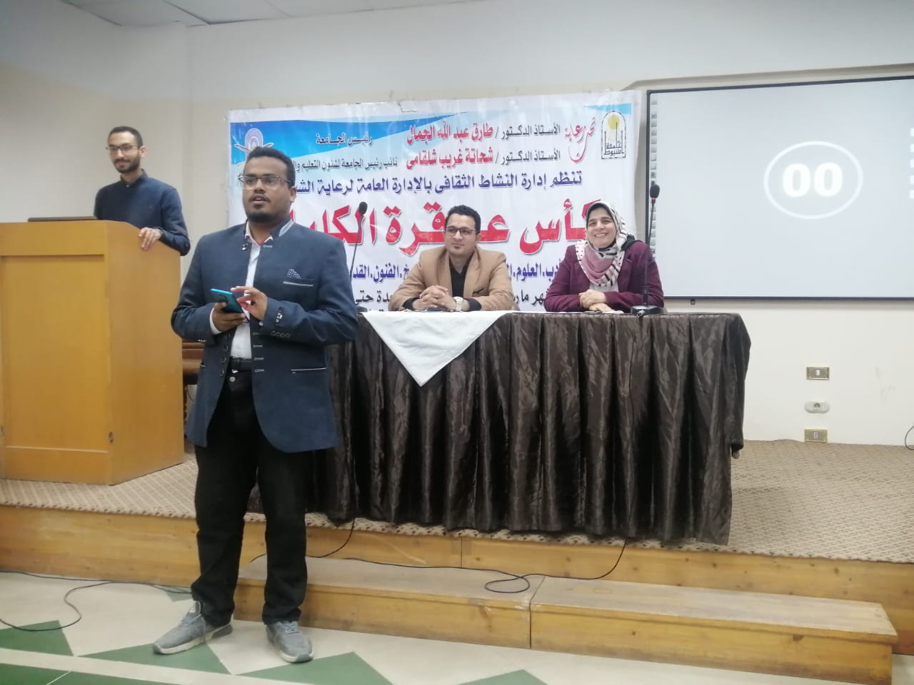 تحت رعاية الأستاذ الدكتور طارق الجمال رئيس جامعة أسيوط  والأستاذ الدكتور شحاته غريب نائب رئيس الجامعة لشؤن التعليم والطلاب والأستاذ الدكتور أسماء عبد الرحمن مستشار الجامعة للنشاط الثقافي  واشراف عام  الأستاذ عز المنصورى مدير الإدارة العامة لرعاية الشباب و الأستاذ هاشم سيد مدير إدارة النشاط الثقافي بالجامعة