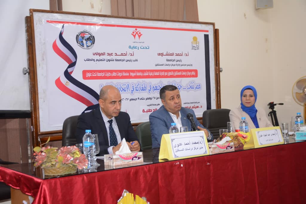إدارة التثقيف السياسى بالإدارة العامة لرعاية الشباب .. فعاليات الندوة الرابعة من الندوات التوعوية بكلية الاداب بالتعاون مع مركز دراسات المستقبل تحت عنوان "مصر تنتخب... حق الشباب وواجبهم في المشاركة في الانتخابات الرئاسية "
