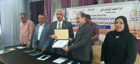 وتم توزيع الشهادات علي السادة الضيوف والمدربين من وزارة الشباب والرياضة وعلي الطلاب المشاركين في الدورة