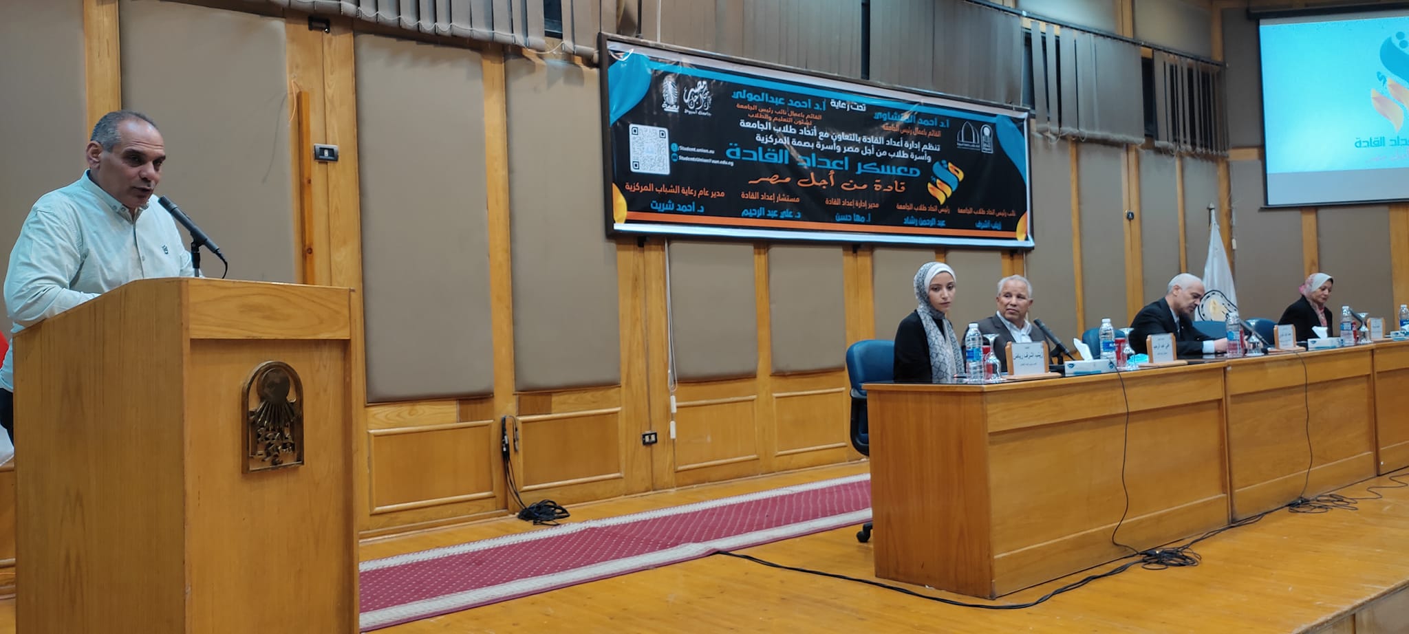وذلك من أجل مشاركة الشباب فى مواجهة التحديات وتمكينهم وتدريبهم وتأهيلهم للقيادة فى حياتهم الجامعية والمستقبلية اكد الدكتور أحمد عبد المولى من خلال كلمته على أهمية الانشطة الطلابية واهمية القيادة خاصة عند التولى لأى منصب.