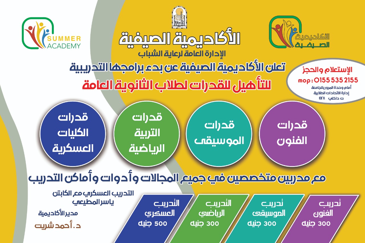 الأكاديمية الصيفية 17 يوليو 2022 تعلن الأكاديمية الصيفية عن بدء برامجها التدريبية للتأهيل للقدرات لطلاب الثانوية العامة