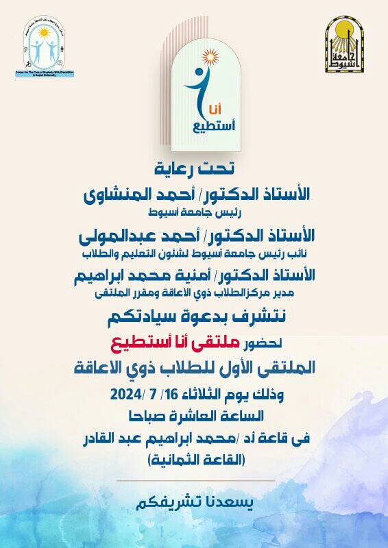 الثلاثاء القادم ... ملتقى جامعة أسيوط الأول لطلاب ذوى الإعاقة "أنا أستطيع"