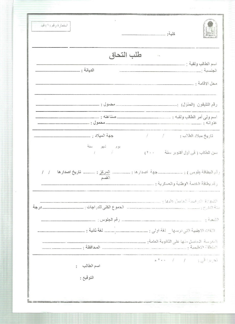 يجب على الطالب ملء النموذج التالي وتقديمه قبل الموعد المحدد . طلب التحاق