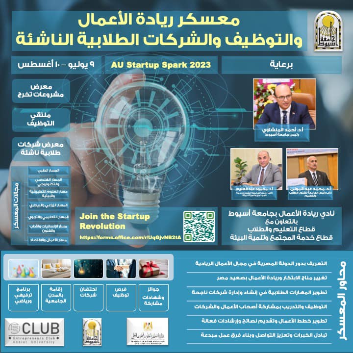 إطلاق معسكر ريادة الأعمال والتوظيف والشركات الطلابية الناشئة بجامعة أسيوط 29 يونيو 2023 إطلاق معسكر ريادة الأعمال والتوظيف والشركات الطلابية الناشئة بجامعة أسيوط