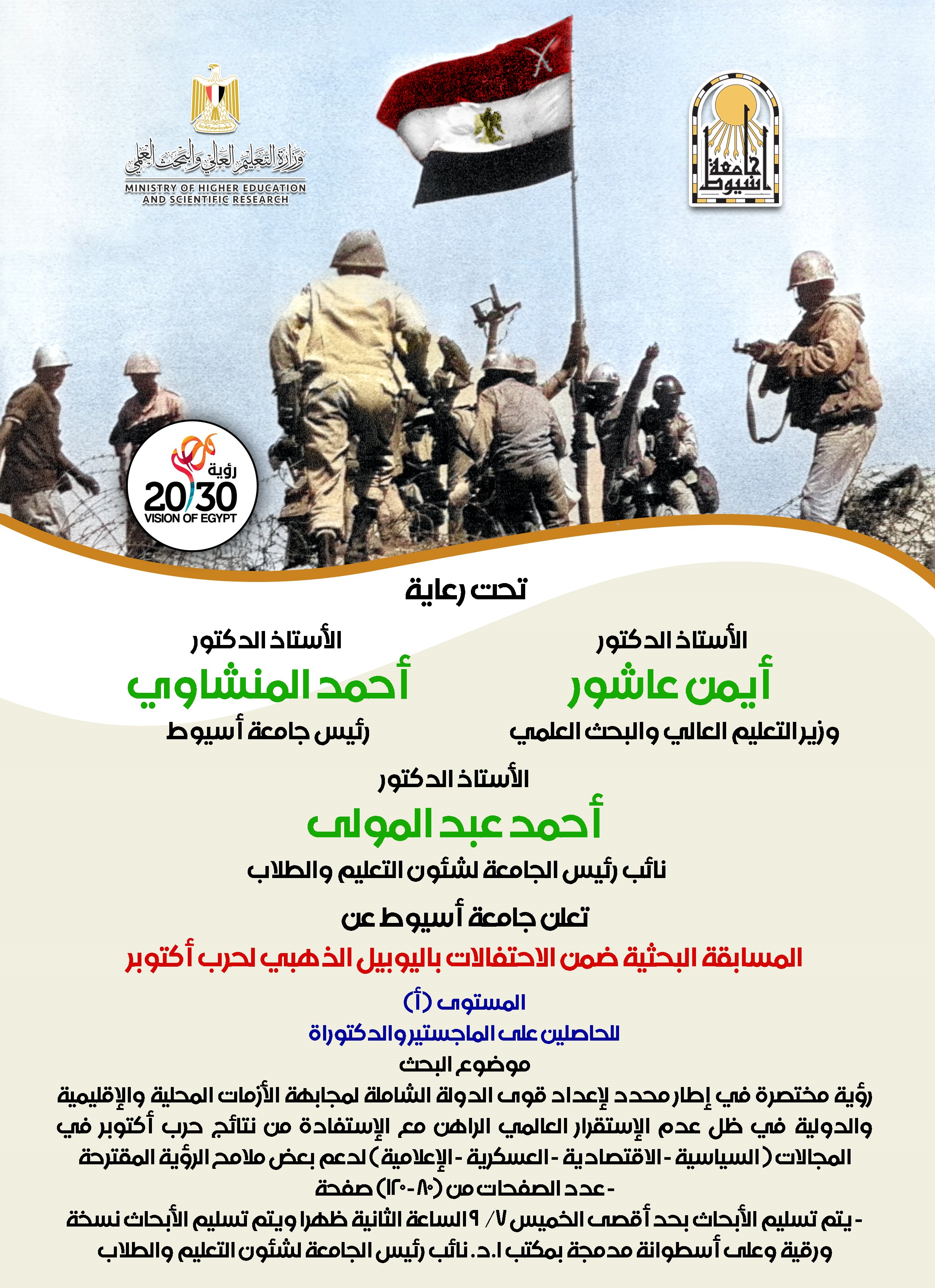 دعوه للمشاركه للحاصلين علي الماجستير والدكتورة المستوي " أ " في المسابقة البحثية ضمن الأحتفالات باليوبيل الذهبي لحرب أكتوبر