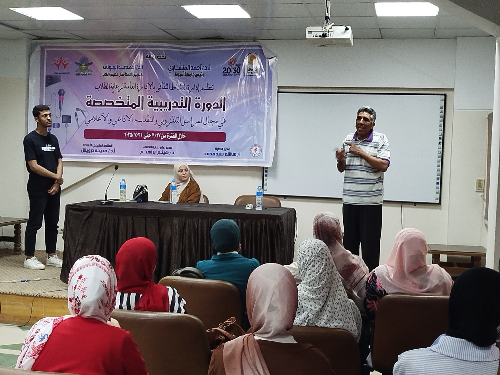 فاعليات الدورة التدريبيه المتخصصة في مجال [ المراسل التلفزيوني والتقديم الاذاعي والاعلامي ] إدارة النشاط الثقافى بالإدارة العامة لرعاية الطلاب 29 يوليو 2025 مناقشة رسالة الماجستير المقدمة من / طاهر عبد الناصر جابر - قسم الكيمياء