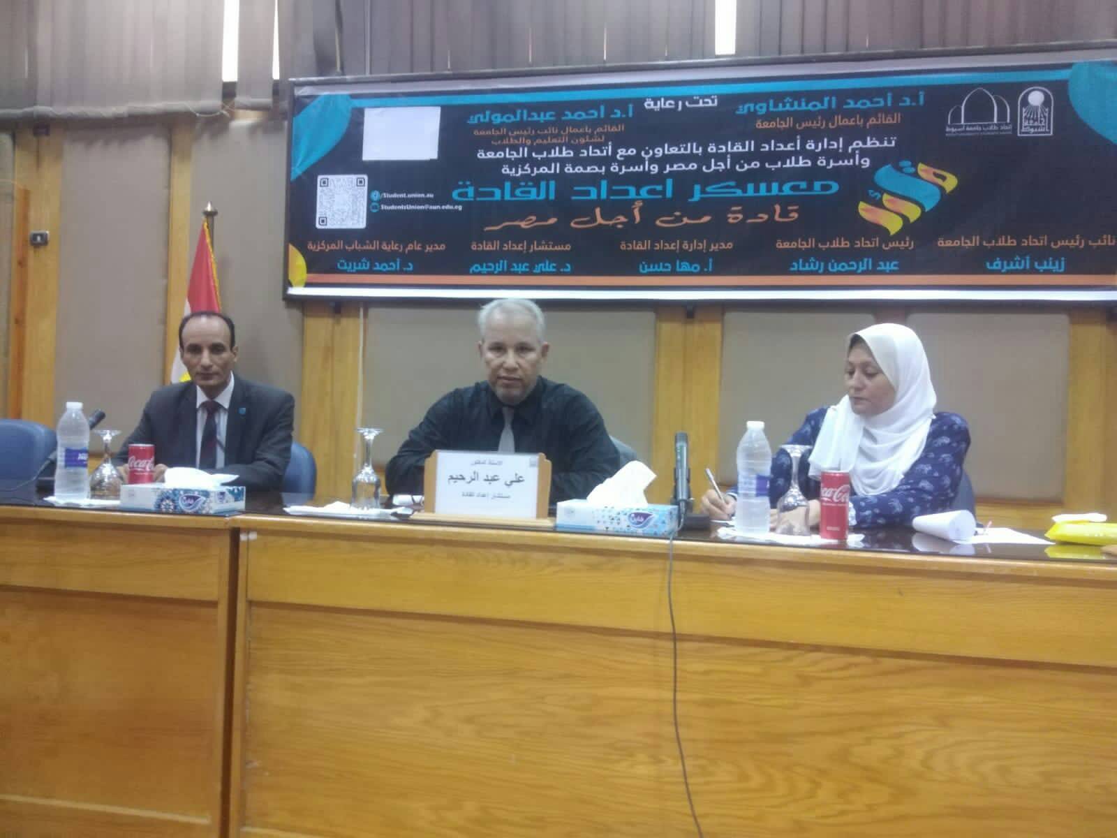 والذى تتضمن الفعاليات بعديد من المجالات الرياضية والفنية والثقافية والترفيهية وعديد من المحاضرات التى تهدف لتوعية الطالب وبناء شخصيته التى تمت اليوم ندوة بعنوان "القيادة والانتماء" للأستاذ الدكتور جمال محمد على عميد كلية التربية الرياضية سابقا