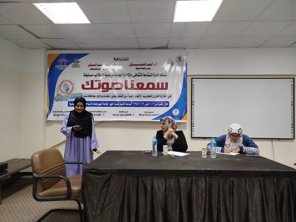 فاعليات مسابقة " سمعنا صوتك " فى مجال الالقاء - ادارة النشاط الثقافي بالإدارة العامة لرعاية الطلاب 14 أكتوبر 2025 الإستبيان الإلكتروني للطلاب