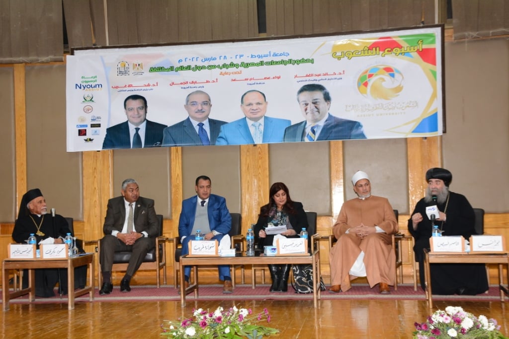 شهدت وقائع الملتقى الثاني لأسبوع الشعوب و الذي تنظمه جامعة أسيوط تحت رعاية الدكتور خالد عبد الغفار وزير التعليم العالي و البحث العلمي واللواء عصام سعد محافظ أسيوط ، والدكتور طارق الجمال رئيس جامعة أسيوط ، انعقاد الجلسة الثانية تحت عنوان "التماسك الاجتماعي في مواجهة التطرف والإرهاب " وذلك بحضور الدكتور شحاتة غريب نائب رئيس جامعة أسيوط لشئون التعليم والطلاب والمشرف العام على الملتقى ، والدكتورة تغريد حسين رئيس قناة النيل الدولية و مدير الجلسة ، والدكتور محمود بكرى عضو مجلس الشيوخ و رئيس مجلس إدارة جريدة الأسبوع ،والأنبا يؤنس مطران الأقباط الأرثوزكس، والأنبا كيرلس وليم مطران الأقباط الكاثوليك، و الدكتور عاصم قبيصى وكيل وزارة الأوقاف ، ونائب سفير دولة اندونيسيا، والسيد سانتو من دولة السودان ممثلاَ عن الوفود المشاركة إلى جانب لفيف من أعضاء اللجنة العليا للأنشطة الطلابية و بمشاركة ممثلين عن 30 دولة عربية و أفريقية .