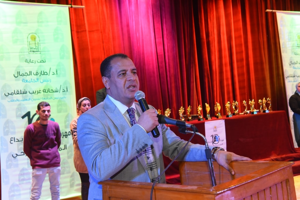 شهدت جامعة أسيوط حفل ختام مهرجان الإبداع المسرحى فى نسخته العاشرة والمنعقد تحت رعاية الدكتور طارق الجمال رئيس الجامعة وبحضور الدكتور شحاتة غريب نائب رئيس الجامعة لشئون التعليم والطلاب والفنان طارق دسوقى رئيس لجنة التحكيم وأعضاء اللجنة التى تضم النجمة شيرين والمخرج أسامة عبد الرءوف ، والناقد الفنى صلاح فرغلى والدكتور محمد ثابت بدارى رئيس قسم التصوير وعميد كلية الفنون الجميلة السابق ، والدكتور منتصر القللى رئيس قسم التربية الموسيقية بكلية التربية النوعية ، والأستاذ محمد جمعة مدير إدارة النشاط الفنى برعاية الشباب إلى جانب حضور الدكتور وجدى رفعت نخلة عميد كلية التربية النوعية ، ومستشار اللجنة الفنية السادة أعضاء اللجنة العليا للأنشطة الطلابية ، والأستاذ عز الدين المنصورى مدير عام رعاية الشباب والسادة عمداء كليات الجامعة ووكلائها وحشد من طلاب كليات الجامعة .
