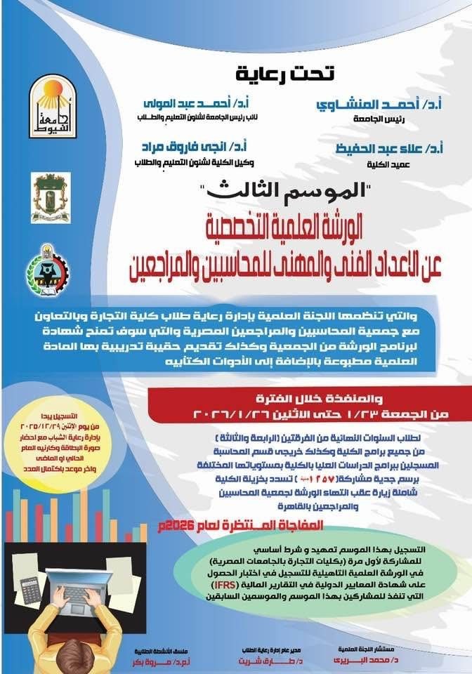 كلية التجارة .. "الموسم الثالث" الورشة العلمية التخصصية عن الإعداد الفني والمهني للمحاسبين والمراجعين