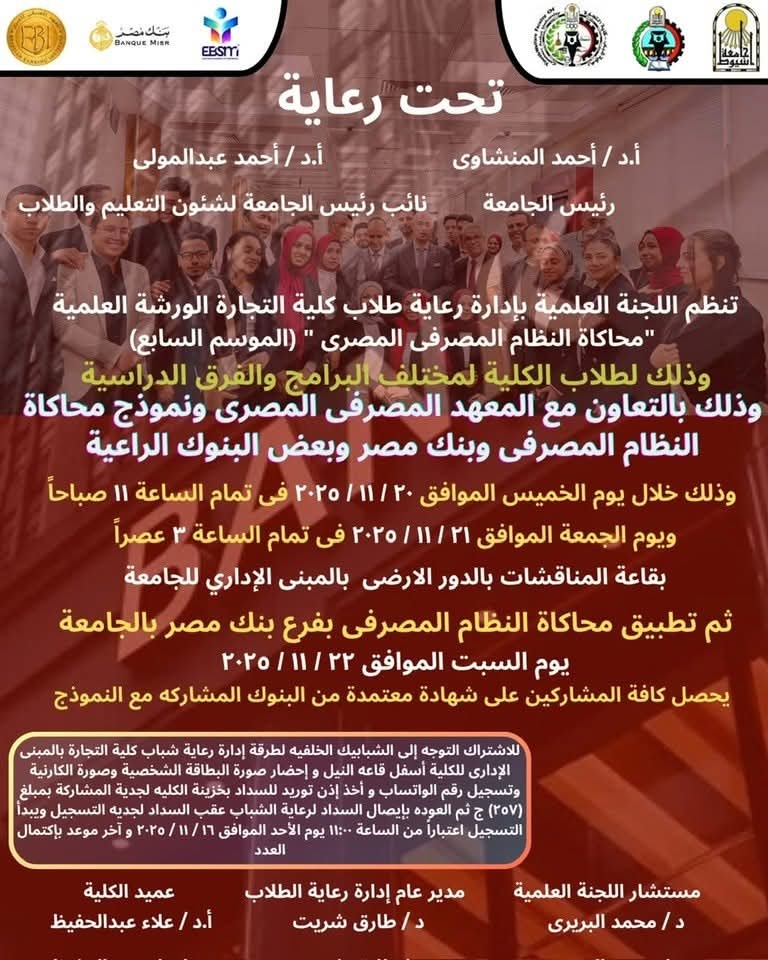 كلية التجارة ... تنظم اللجنة العلمية بإدارة رعاية طلاب كلية التجارة الورشة العلمية "محاكاة النظام المصرفي المصري" (الموسم السابع)
