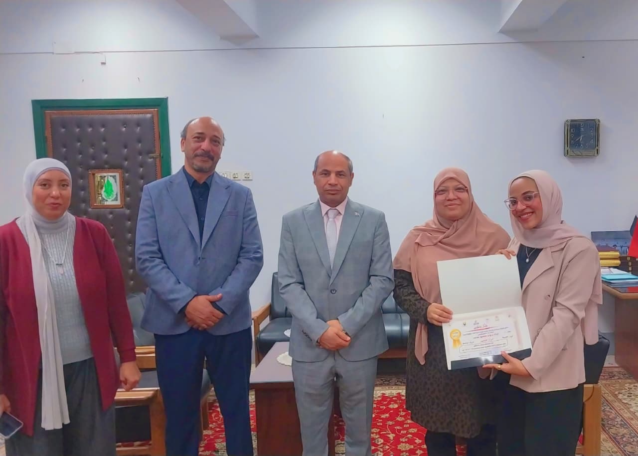 كلية التربية-حصول الطالبة آيات بدوى بكلية التربية على المركز  الخامس على مستوى الجامعة فى مسابقة الطالب والطالبة المثالية