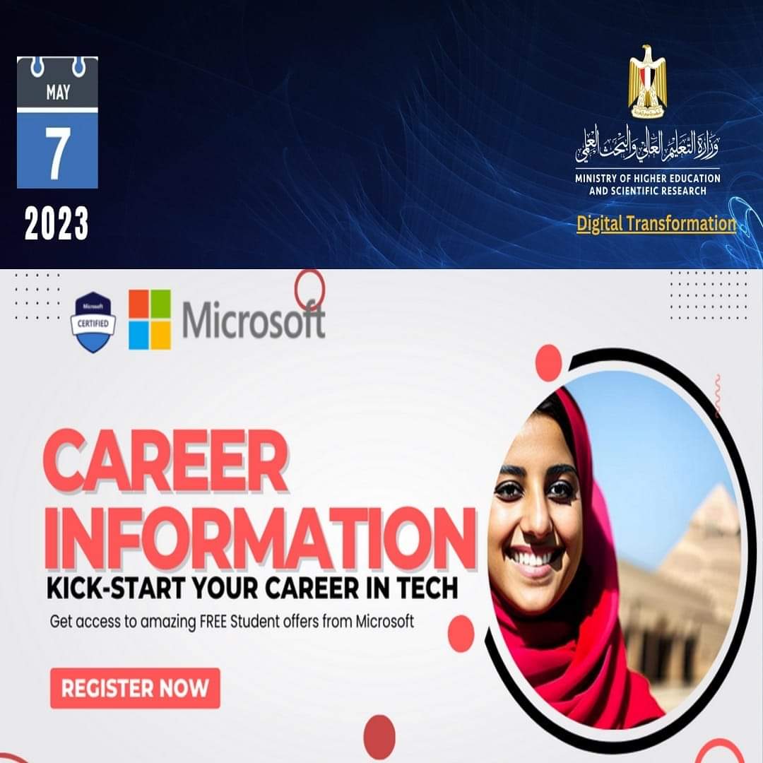 أعلنت منظومة التحول الرقمي بوزارة التعليم العالي و البحث العلمي، تحت رعاية الدكتور محمد أيمن عاشور وزير التعليم العالي والبحث العلمي ، عن توافر فرص تدريبية مجانية لتأهيل الطلاب لسوق العمل، يأتي ذلك فى اطار سعي منظومة التحول الرقمي بوزارة التعليم العالي و البحث العلمي،  إلى توظيف الأدوات التكنولوجية بهدف مواكبة التطورات المستمرة، وتحقيقا لأهداف استراتيجية التعليم العالي والبحث العلمى.