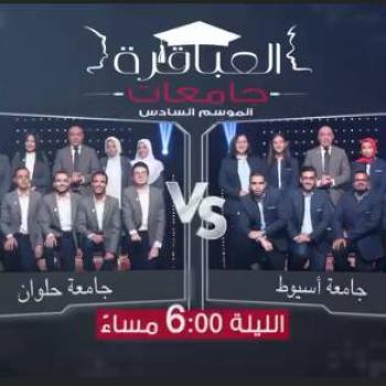 إدارة النشاط الثقافى .... سوف تذاع اليوم المباراة 18 من الموسم السادس لبرنامج عباقرة جامعات بين جامعة اسيوط وجامعة حلوان