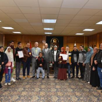 مركز رعاية الطلاب ذوي القدرات الخاصة .. الدكتور المنشاوي يحتفي بطلاب الجامعة الفائزين فى مسابقة "المواهب الذهبية" لذوي القدرات الخاصة