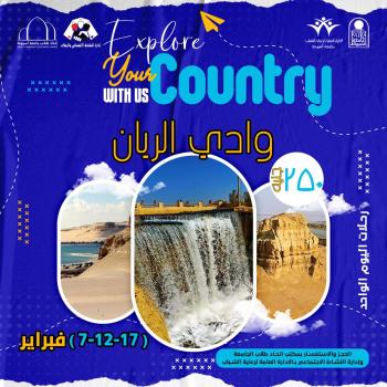 إدارة النشاط الإجتماعي والرحلات بالتعاون مع اتحاد طلاب جامعة اسيوط .. تعلن عن إقامة "رحلات اليوم الواحد" خلال أجازة منتصف العام الى " وادي الريان "